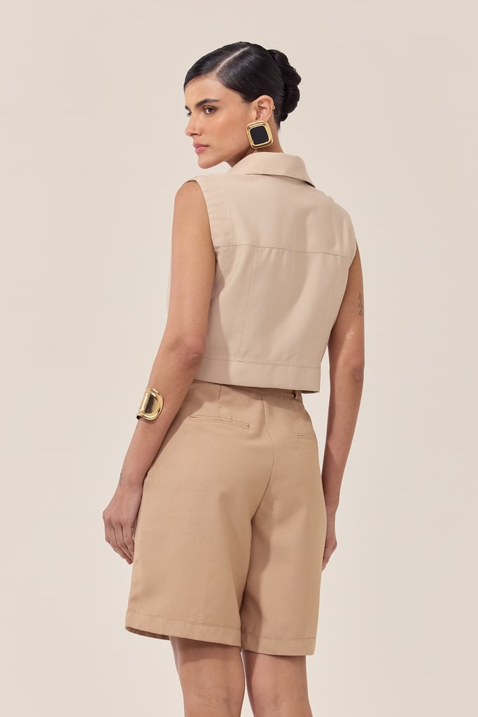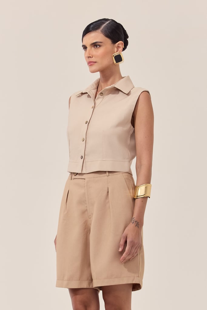 Essa regata apresenta uma gola que oferece um toque elegante e sofisticado. O fechamento em botões na parte frontal permite um ajuste personalizado, além de criar um visual único e arrojado. Ideal para os dias mais quentes, essa peça é perfeita para compor looks casuais e estilosos, seja para o dia a dia ou para momentos descontraídos. Combine com shorts, saias ou calças para um visual moderno e confortável. Pode ser usada sozinha ou combinada com casacos leves para dias mais frescos.