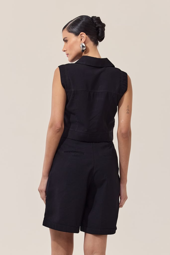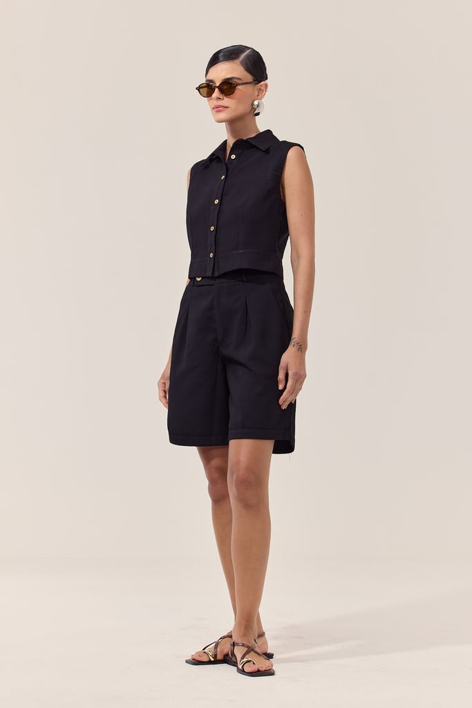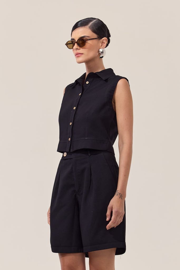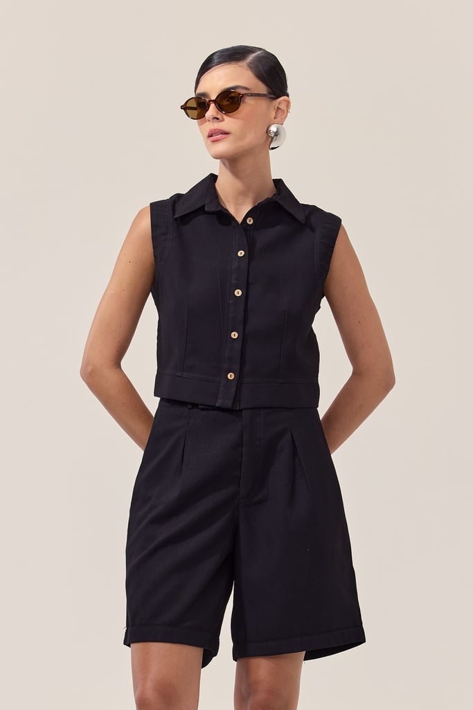 Essa regata apresenta uma gola que oferece um toque elegante e sofisticado. O fechamento em botões na parte frontal permite um ajuste personalizado, além de criar um visual único e arrojado. Ideal para os dias mais quentes, essa peça é perfeita para compor looks casuais e estilosos, seja para o dia a dia ou para momentos descontraídos. Combine com shorts, saias ou calças para um visual moderno e confortável. Pode ser usada sozinha ou combinada com casacos leves para dias mais frescos.