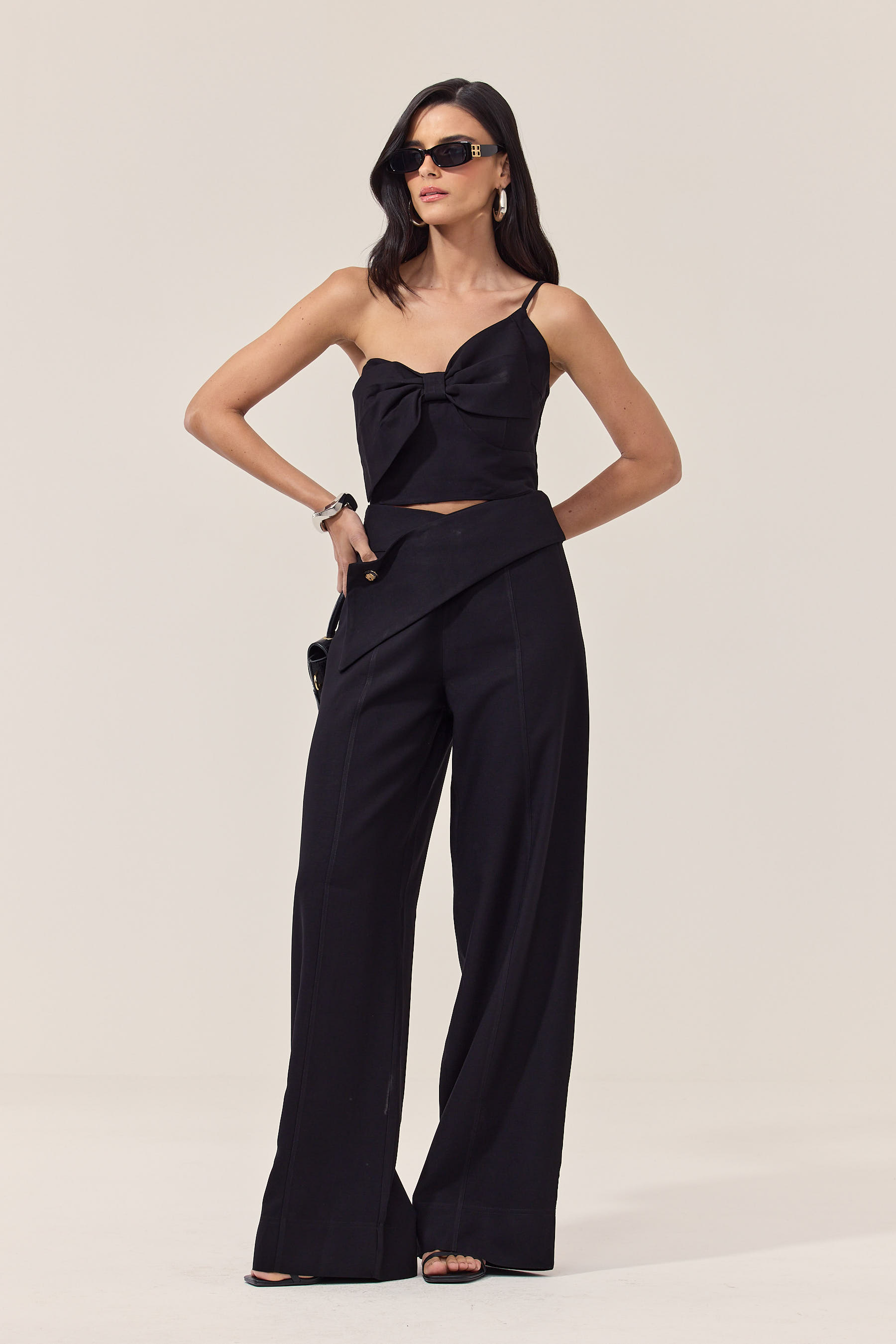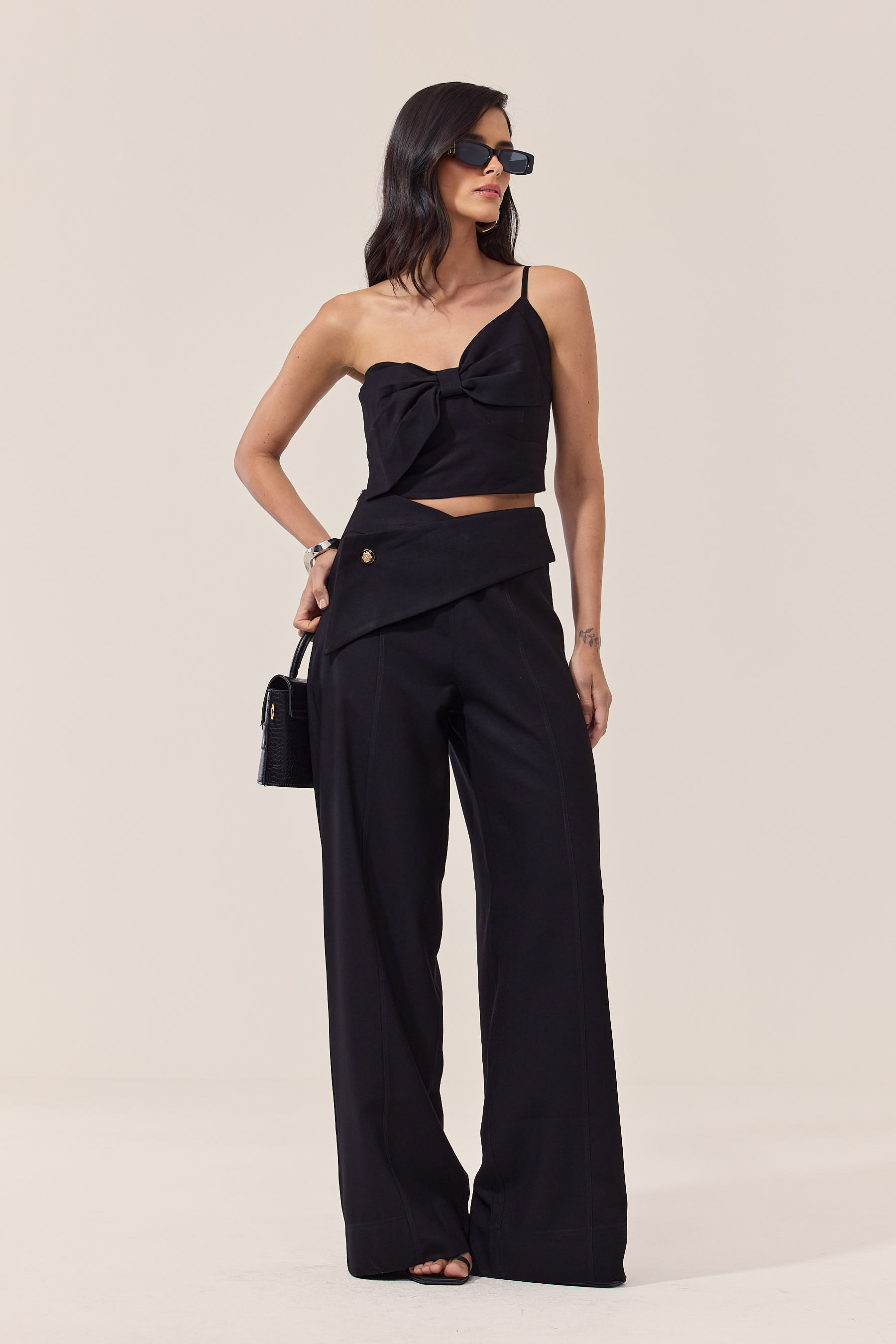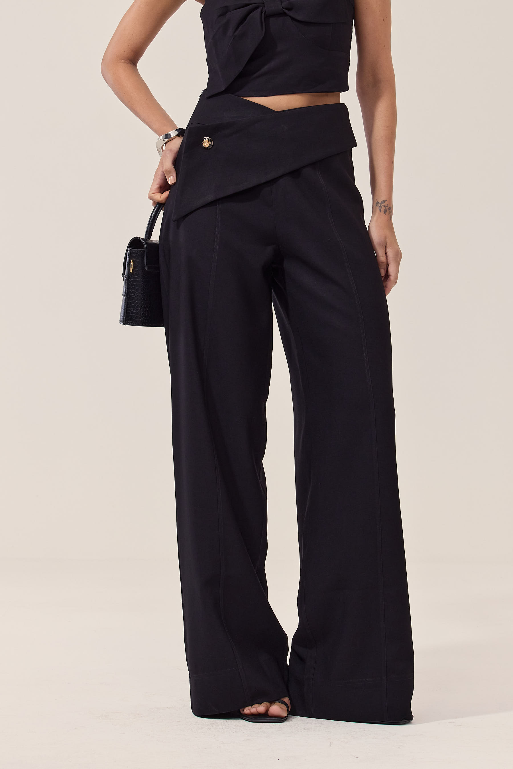 A calça pantalona com caimento perfeito é a escolha ideal para quem busca um look chic tanto para o trabalho quanto para encontros. Com detalhes delicados, como o botão e a faixa na frente, essa peça única garante um toque especial ao seu visual. Confortável e versátil, ela se adapta a diversas ocasiões. Não perca a oportunidade de elevar seu estilo com essa peça indispensável no seu guarda-roupa!