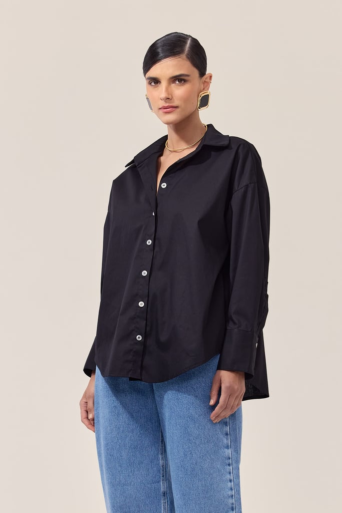 Elegância e sofisticação definem esta camisa de gola com lapela e manga comprida, uma peça essencial para quem valoriza estilo e versatilidade. A gola clássica com lapela confere um toque de formalidade, enquanto o design moderno e a parte inferior assimétrica trazem um diferencial contemporâneo, ideal para quem busca um look equilibrado entre o tradicional e o ousado.