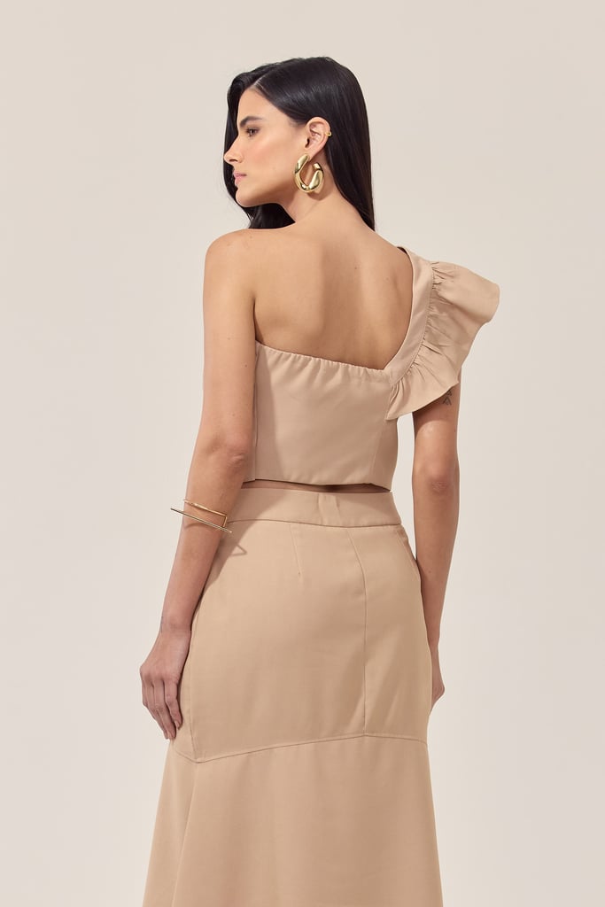 A blusa de decote assimétrico é a peça ideal para quem busca elegância e conforto em um único look. Com um decote de um ombro só, ela traz um toque moderno e sofisticado, perfeito para ocasiões especiais ou para compor um visual cheio de personalidade. Os babados frontais acrescentam movimento e charme à peça, valorizando delicadamente o busto e criando um visual feminino e sofisticado. O fechamento frontal com botões forrados acrescenta um detalhe de acabamento refinado.