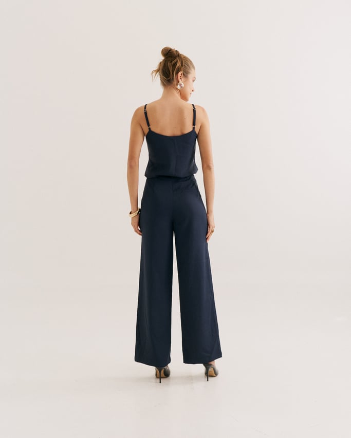 A Calça Crystal une sofisticação e conforto em uma modelagem reta e ampla. Com cintura alta, acima do umbigo, valoriza a silhueta e garante um caimento impecável. Detalhes como os bolsos laterais funcionais, pregas frontais e fechamento por zíper com botão resinado no tom da peça tornam o modelo ainda mais elegante e versátil. Ideal para compor produções modernas que transitam do dia a dia ao trabalho.
