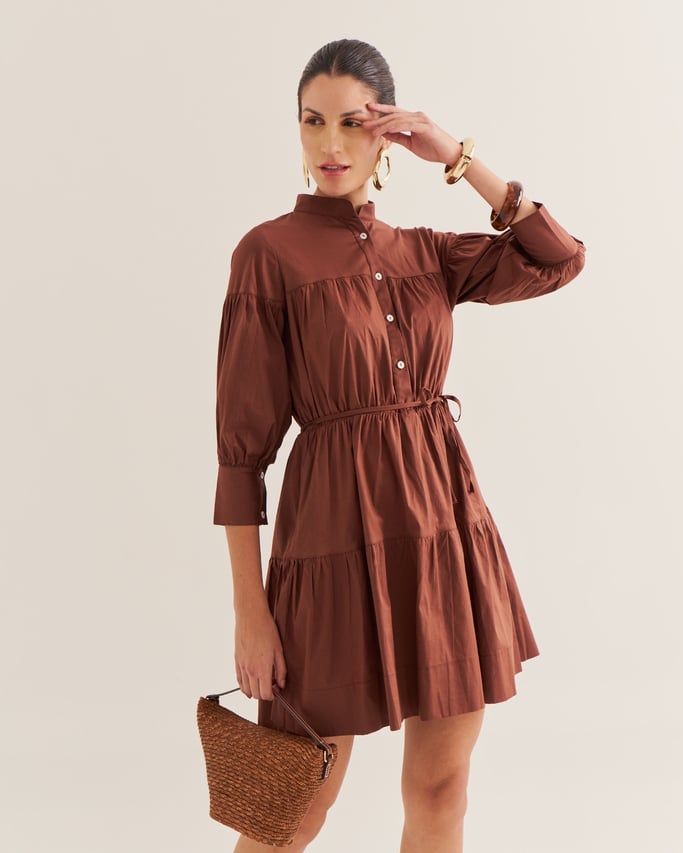 - Para um visual elegante, aposte em acessórios delicados, como um cinto fino para marcar a cintura, joias discretas e uma clutch refinada.