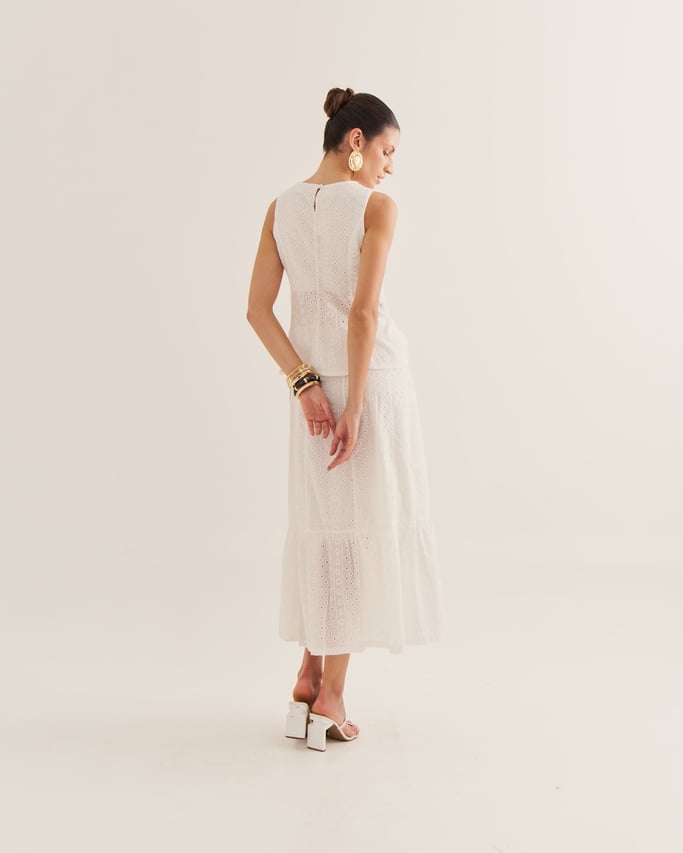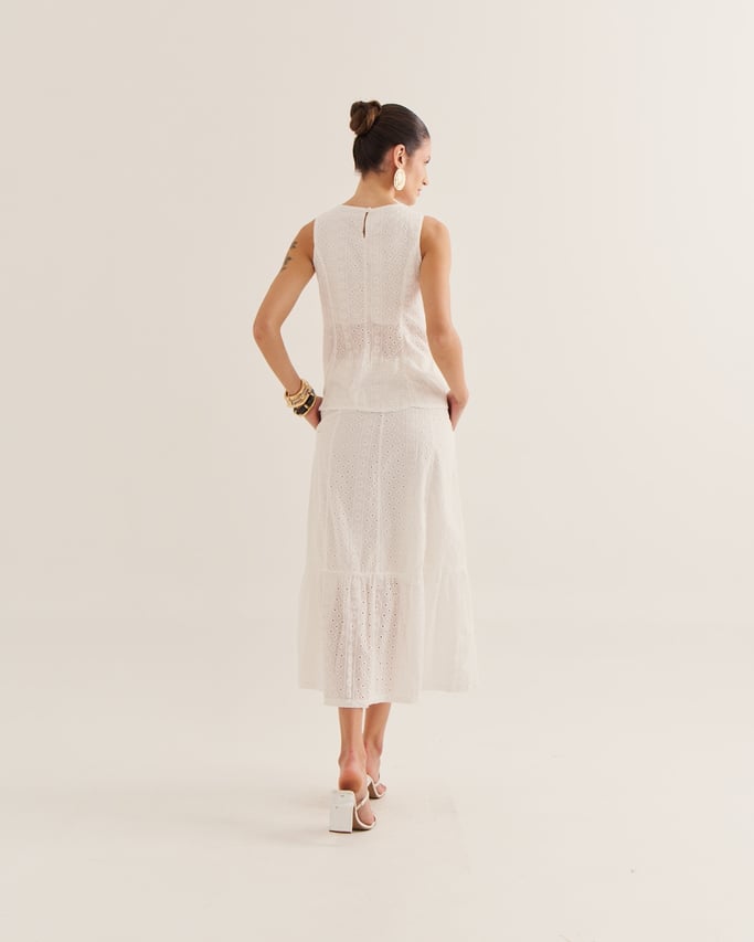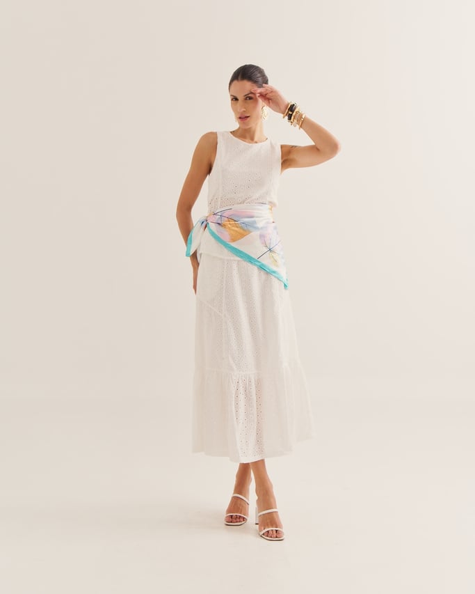 A saia laise é a escolha perfeita para quem busca leveza e sofisticação em um só look. A saia, de modelagem soltinha traz praticidade e conforto. O tecido laise, sempre atemporal, adiciona frescor e um ar artesanal, típico das estações mais quentes. Uma peça que une feminilidade e estilo em perfeita harmonia.