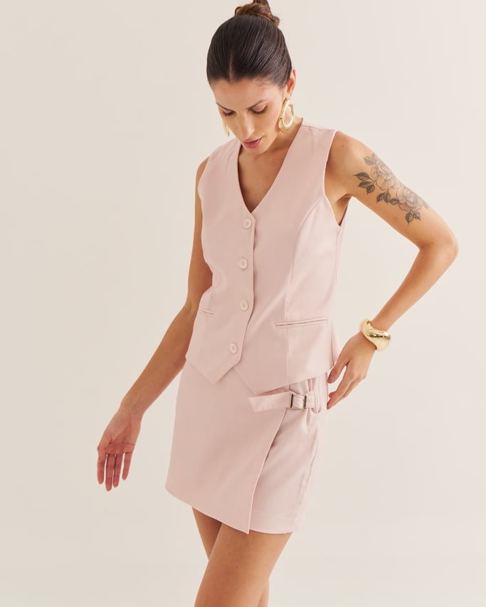 O Shorts Saia Sofia traz a sofisticação da alfaiataria com a praticidade de uma peça versátil e moderna. Com cintura alta e modelagem que valoriza a silhueta, possui sobreposição de saia na parte externa e shorts interno para maior conforto. O detalhe com fivelas prateadas confere um charme especial, enquanto o fechamento lateral por zíper invisível garante acabamento discreto e refinado. Uma escolha elegante para compor looks do dia a dia ou produções mais elaboradas.